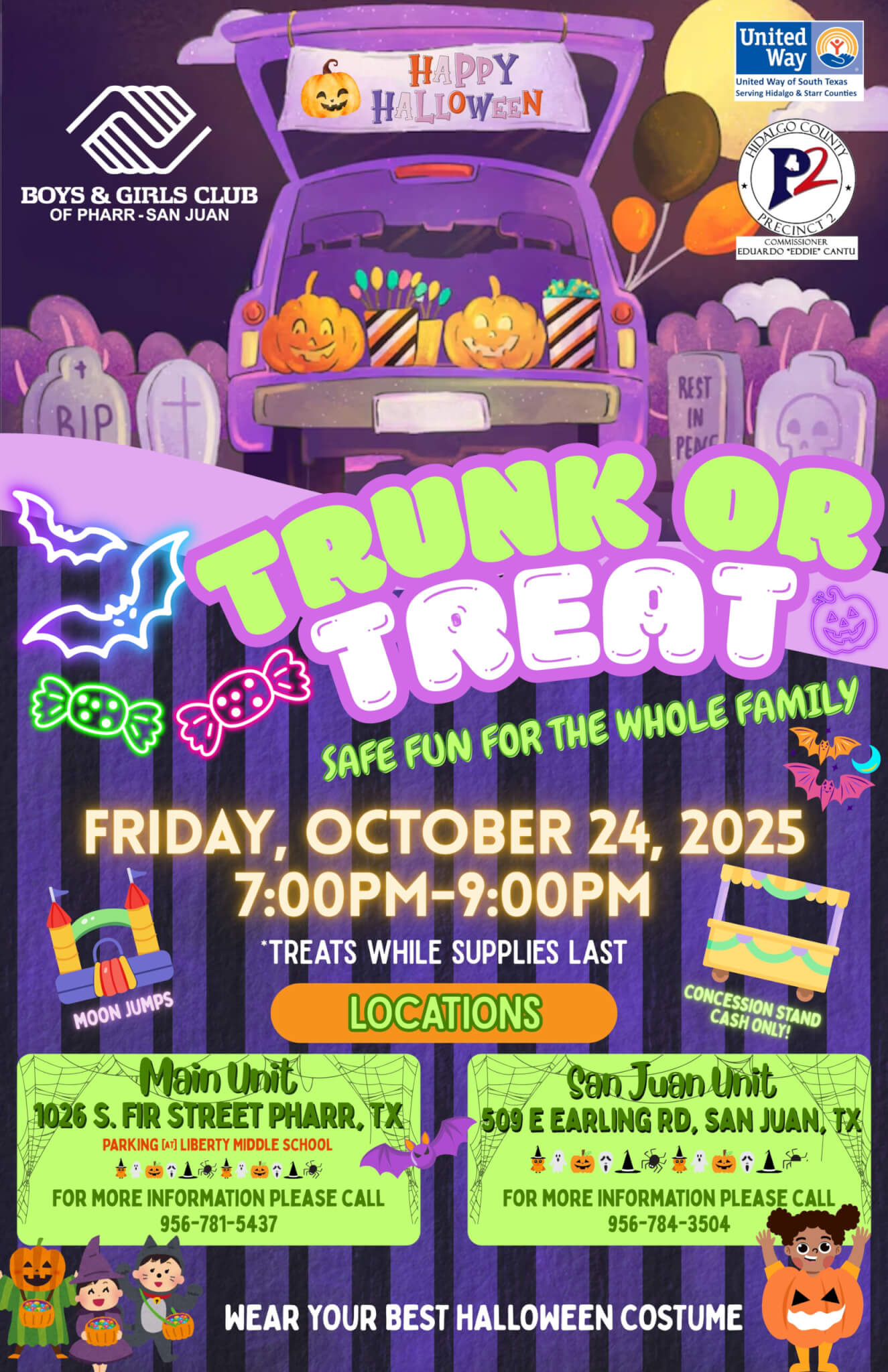 Join us for Trunk or Treat 2025! October 22, 2025 Join us for Trunk or Treat 2025! When: Friday, October 24th, 7pm – 9pm Where: Main & San Juan Unit Club Sites What: A safe and fun filled trunk or treat extravaganza for the whole family! Wear your best costume and we will see you there!